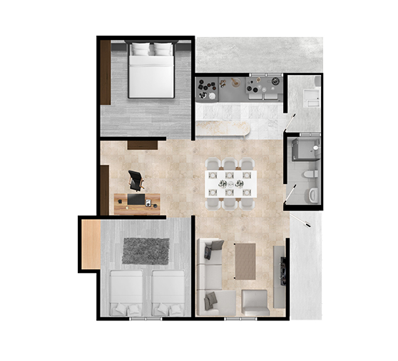 Habitaciones 2 / Sala TV / Hasta 78 m²